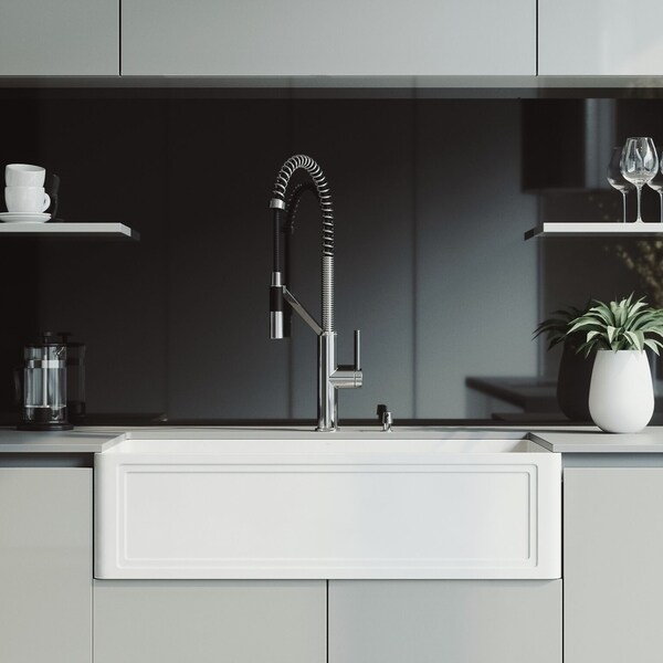 Kitchen sinks from emoderndecor.com featuring stainless steel kitchen sinks and apron front the ariel 36 inch streamlined 16 gauge stainless steel farmhouse sink will make your kitchen stand. The 36 vigo casement front matte stone™ farmhouse kitchen sink is like no other. Also, i am going to cover every vital feature of this item which will help you to decide what to do. Ariel 36 stainless steel 50/50 double bowl farmhouse kitchen sink flat apron.